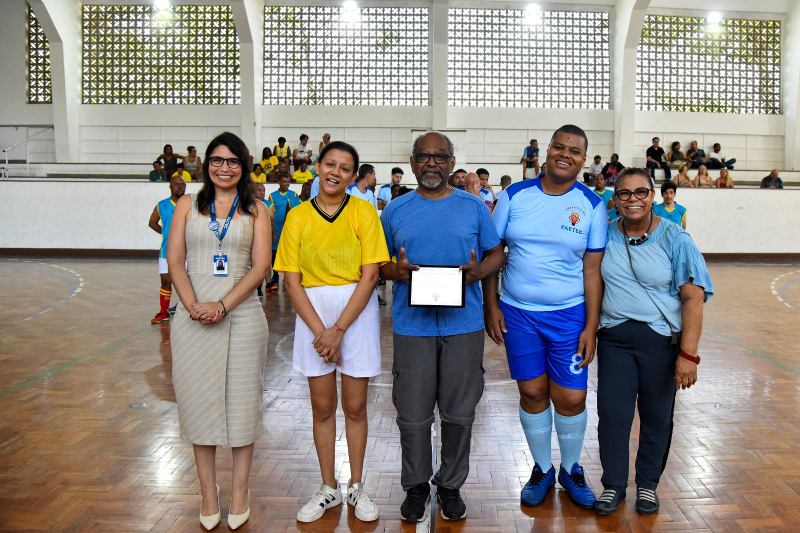 Antes do início do torneio, o professor de Educação Física, José Carlos Corrêa, foi surpreendido com uma emocionante homenagem, arrancando aplausos do público.