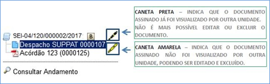 c – Após assinado, o documento ganha um símbolo ao seu lado na Árvore do Processo, conforme  imagem abaixo: