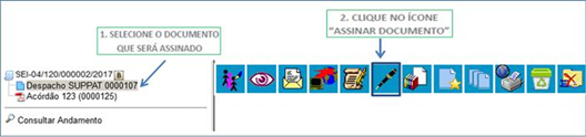 a – Selecione na árvore do processo o documento a ser assinado e clique no ícone “Assinar Documentos”: