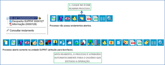 Existem duas formas de reabrir processo, uma é quando você tramitou um processo para outra unidade, mas se esqueceu de assinar um documento, por exemplo, ou tramitou para uma unidade equivocadamente, mas precisa, com urgência, enviar o processo para a unidade correta. Neste caso o usuários com o perfil avançado poderá reabrir e processo e tramitá-lo.